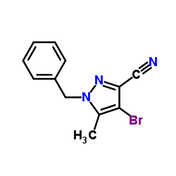 Synonyms:1-Benzyl-4-bromo-5-methyl-1H-pyrazole-3-carbonitrile, 1-benzyl-4-bromo-5-methylpyrazole-3-carbonitrile, 1H-Pyrazole-3-carbonitrile, 4-bromo-5-methyl-1-(phenylmethyl)-